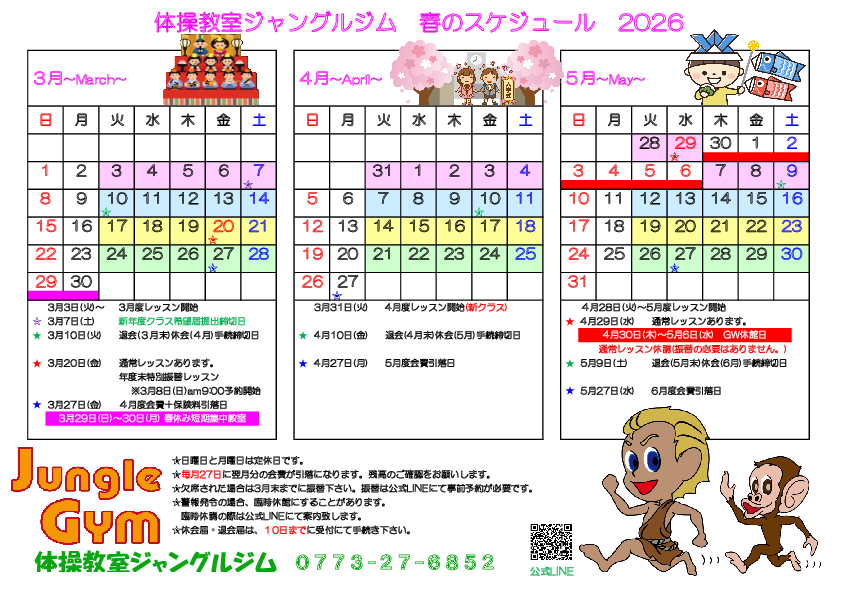 (定員になっているクラスがあるのでお問い合わせ下さい。)